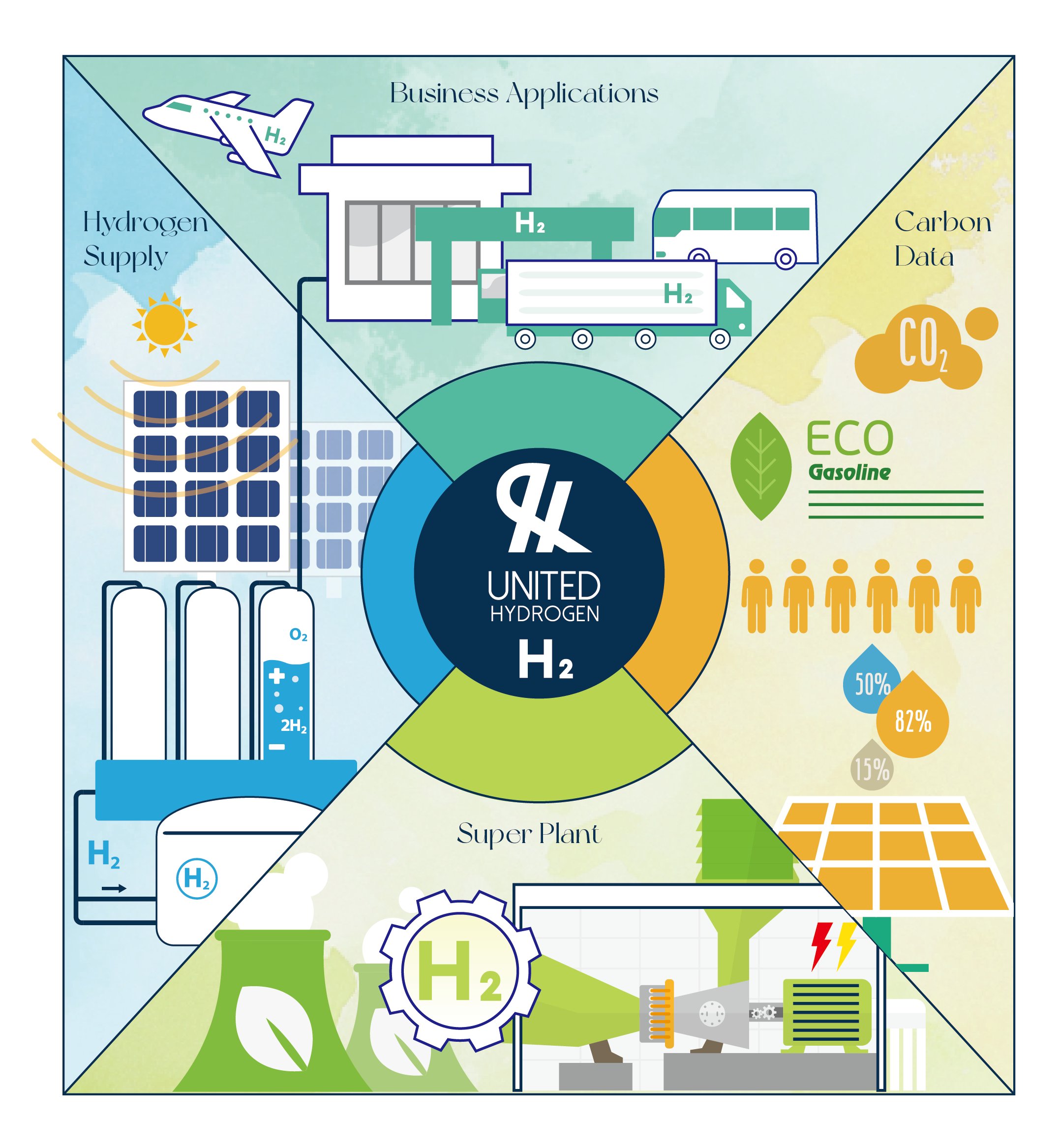 United Hydrogen is establishing an closed loop ecosystem from hydrogen supply to end-use energy consumption Providing one-stop service covering energy production, storage and transportation, infrastructure construction, business application, key equipment and carbon asset management
